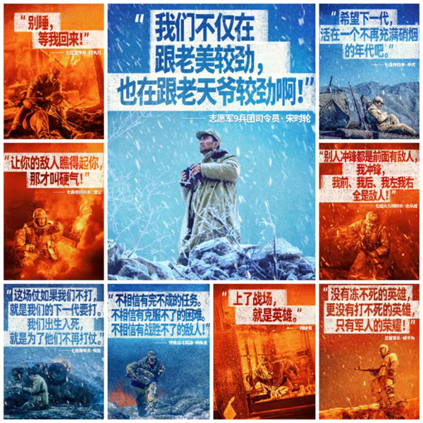 同時,影片也塑造了眾多性格鮮明的志愿軍戰士,細膩豐富的情感刻畫和浴血苦戰的戰斗場景交織,提煉出年輕志愿軍戰士的生動縮影。從解放戰爭到抗美援朝,主人公伍氏兄弟前赴后繼奔赴戰場,與雷公、余從戎、平河等戰友用熱血與生命保家衛國,兄弟情、戰友情感人至深。毛岸英向彭德懷主動請纓,毛澤東將兒子送上戰場,而岸英將熱血灑在了異國土地上。這些舍生忘死、為國捐軀的戰士們,都是共和國永遠銘記的英雄兒女。影片不僅讓我們走近并了解那些為國捐軀的英雄,更使我們銘記祖國因何山河無恙,今天因何國泰民安。一個個有血有肉的志愿軍官兵英勇無畏、浴血奮戰,用血肉之軀、無畏斗志、勝戰智慧、犧牲奉獻展示了“最可愛的人”的壯美形象,中國“鋼鐵軍人”戰勝了美國“鋼鐵部隊”,譜寫了驚天地、泣鬼神的雄壯史詩和中國軍人不可戰勝的英雄傳奇。
