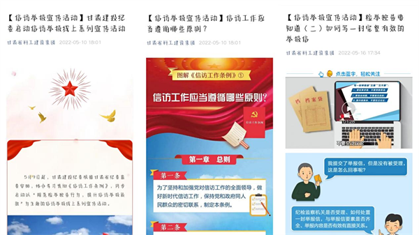 為深入落實紀檢監察信訪舉報工作,推動新區公司紀檢監察信訪舉報工作高質量發展,按照集團公司紀委關于開展信訪舉報線上系列宣傳活動的工作要求,5月9日起新區公司紀委通過視頻、圖片、條幅及轉載相關自媒體信訪方面文章等,積極宣傳和貫徹落實紀檢監察信訪工作,以“規范檢舉控告行為,提升信訪舉報質效”為主題,開展信訪宣傳月活動。
