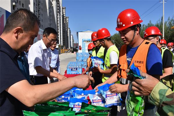 活動中,嚴永紅一行先后到蘭州新區瑞嶺嘉苑保障房項目部、蘭州新區瑞嶺名郡項目部、瑞嶺錦繡家園項目部、鋼結構公司二期生產車間及物業公司,看望慰問在高溫環境下仍然堅守一線的職工。嚴永紅代表新區公司黨委、新區公司和鋼結構公司,對他們的辛勤付出表示感謝。嚴永紅表示,廣大職工在高溫天氣工作一定要注意自身安全,防暑降溫、勞逸結合,以良好的精神狀態投入到工作中去。同時他還叮囑施工方在抓好工程進度和施工安全的同時,要把防暑降溫工作落到實處,切實保障一線工人的身體健康。
