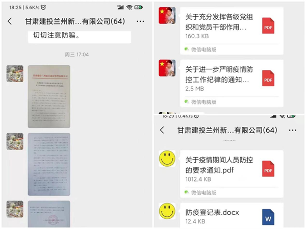 新一輪疫情發生以來,甘肅建投新區公司黨委嚴格按照地方疫情防控部署要求,積極響應上級黨委號召,科學判斷形勢、精準把握疫情,統一領導、統一指揮、統一行動,認真做好各項疫情防控工作。要求各干部職工認真履行職責和使命,根據各自職責分工,自覺提高站位、強化大局意識、主動擔當作為,全面形成聯防聯控、群防群治的疫情防控工作合力。