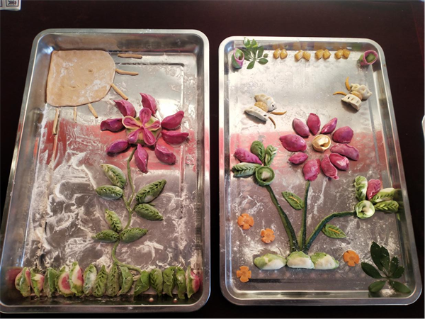比賽分為搟餃子皮、包餃子、餃子拼圖、吃餃子等環節。隨著主持人一聲“比賽開始”,搟餃子皮比賽率先拉開序幕,計時五分鐘,每組選手緊張有序的配合,一個人揉面團,另一個人搟面皮。在場觀眾在一旁為他們加油指導,大家忙得不亦樂乎,情緒高漲。選手們紛紛展示自己的手工技能,你追我趕,不時交流包餃子的技巧,同時在四個餃子里面放了棗作為幸運餃子。選手們技能嫻熟,包出的餃子形態各異、五彩繽紛,用餃子拼出花草、蝴蝶、太陽、甘肅建投logo等圖案,創意十足。在熱鬧激烈的吃餃子比賽環節,每個組選出飯量最好、吃飯速度最快的兩名選手,當端上熱騰騰的半斤餃子,選手們大口大口地吃,不甘落后,“狼吞虎咽”的樣子把一旁的觀眾逗得哈哈大笑,同時為他們加油鼓勁。吃的最快的一組僅用1分05秒獲得“最佳吃貨”稱號。