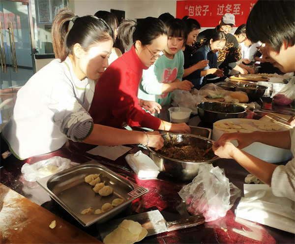 新區公司職工大多家在市區,冬至無法與家人相聚。新區公司為讓職工在新區感受到在家吃餃子的溫暖,組織職工一起動手包餃子,煮餃子,熱熱鬧鬧過冬至。
