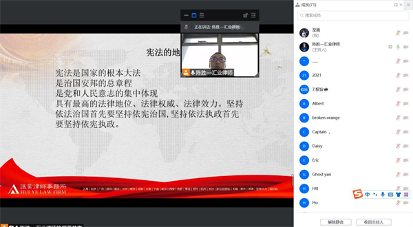 本次講座邀請上海市匯業(蘭州)律師事務所陳勝律師為大家開展線上普法專題講座,陳勝律師從憲法解讀、《新安全生產法》新修內容講解、《中華人民共和國民法典》及其他法律、行政法規關于建設工程合同的規定解讀、《公司法》中用到的實用性條款、合同管理中應注意的事項和條款、電信網絡詐騙等方面,為大家講授了實用有益的普法知識,他結合當下社會熱點事件和社會現象,講解了高空拋物罪、襲警罪、侵害英雄烈士名譽榮譽罪等犯罪行為,教育大家工作生活中要警惕自身言語行為,遵守社會法律法規,做一名知法守法的公民。2021年是民法典實施的第一年,民法典對原有的法律重新編排,陳勝律師結合公司職工的工作生活實際,講解民法典重點內容。當下網絡詐騙層出不窮,社會危害嚴重,陳勝律師為大家講解了網絡詐騙的常見手段,如何應對網絡詐騙,使廣大職工增強自身防詐騙的水平和能力,提高自我保護能力。