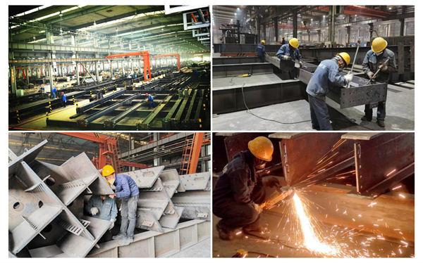鋼結(jié)構(gòu)生產(chǎn)加工車間工人作業(yè)正忙