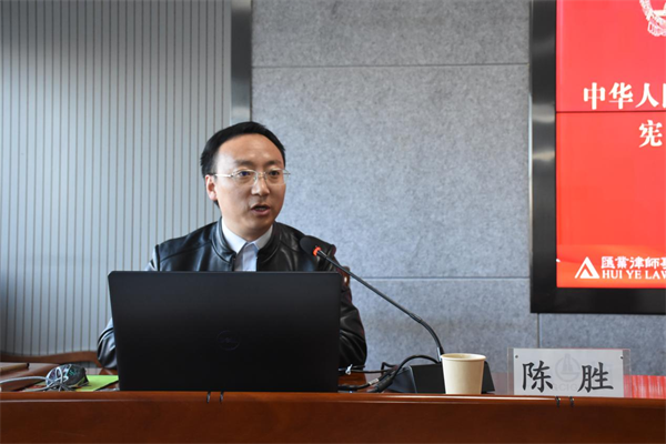 陳勝律師的講座內容豐富、深入淺出、見解深刻,涵蓋了《憲法》相關知識的解讀、“背靠背條款”司法解釋的解讀、司法新規出臺后合同簽訂及履行過程中的注意事項、工程領域違法犯罪行為典型案例警示等多個方面。