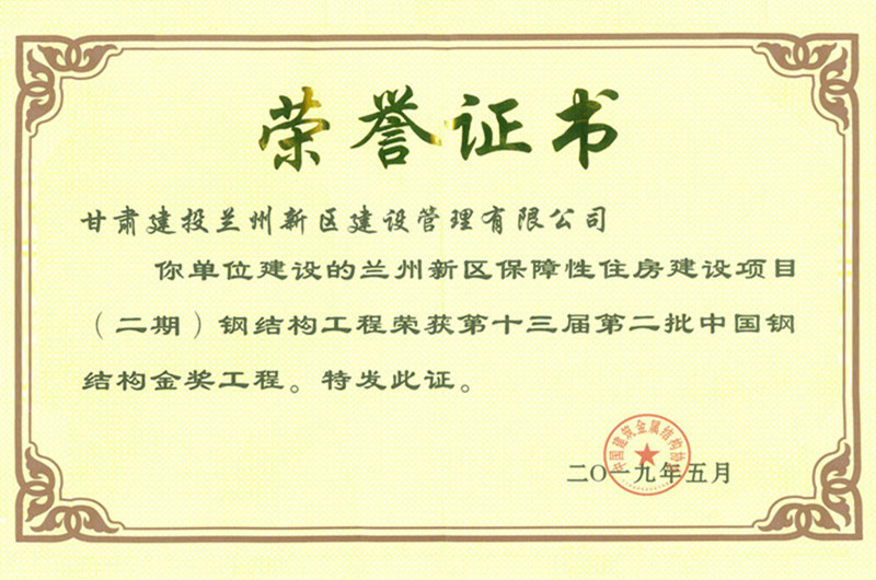 “中國(guó)鋼結(jié)構(gòu)金獎(jiǎng)”榮譽(yù)證書