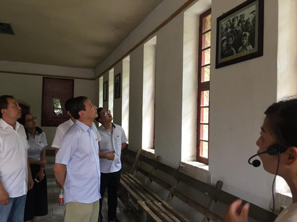 全體黨員在楊家嶺革命舊址仔細聆聽講解員介紹