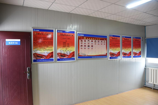 項目臨時黨支部召開會議 新區公司黨委為保證項目建設順利開展,在蘭州工業學院項目部成立臨時黨支部,了解工人在工作、生活中的存在的困難,聽取工人的意見,解決工人的合理訴求;根據實際情況完善工地的生活配套設施,在工人的臨時住所通暖氣,在項目工地建設醫務室、理發室、超市,保障工人的基本生活需求;在項目工地上,配備體育器材,并組織職工籃球賽,建設圖書閱覽室,舉行“讀書”活動,緩解工人的工作壓力,豐富了一線建設工人的文化娛樂生活。