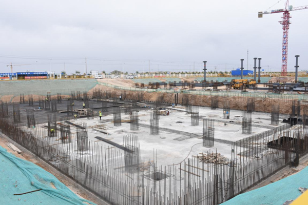 基坑施工現場 在混凝土澆筑現場,你可以看到,一根根鋼筋整齊劃一,規格統一,嚴格按照相關工法進行鋼筋綁扎,混凝土澆筑前,建筑工人將對鋼筋、支模架、預埋管件進行全方位的檢查,在細節上下功夫,有如此的施工質量,無怪乎敢向“飛天金獎”和“魯班獎”進軍。 新區公司按省級文明工地標準進行現場管理,強化施工現場道路硬化、施工現場平面布置、現場內渣土外運、施工噪聲控制等規定的嚴格落實,整個施工現場設施清潔,場容整潔。