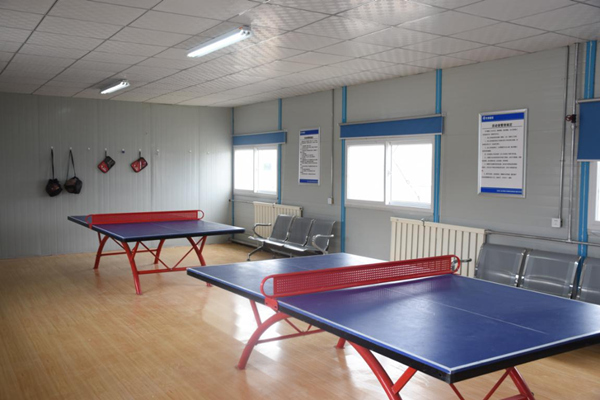項目體育活動室 新校區建設項目的一線建設工人這樣說道:“這次干活的工地與以往的有很大不同,你看我們住的宿舍里有暖氣、宿舍旁邊就有超市、理發室、醫療室,還有籃球場、活動室和圖書室。這樣的條件是以前不敢想象的,住在有暖氣的宿舍冬天也好過了,生活也方便了,業余生活也豐富了。工作條件好了,我們更有干勁兒,保證把活兒干好。”